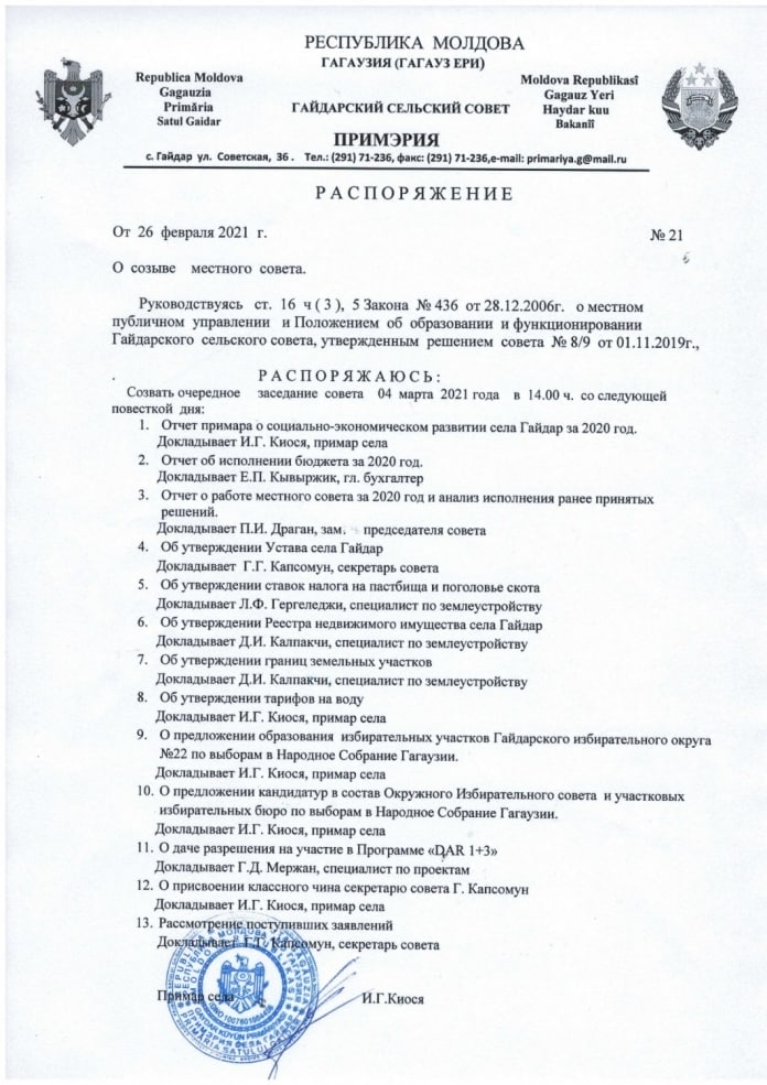 Главная Объявления 4 марта 2021 г. состоится очередное заседание местного советаОбъявления4 марта 2021 г. состоится очередное заседание местного совета 26.02.2021128 Facebook Twitter OK Linkedin Viber WhatsApp Очередное заседание Совета с. Гайдар состоится 04 марта 2021 года, в четверг. Мероприятие пройдет в конференц зале примарии, начало в 14.00. Принять участие в обсуждаемых вопросах могут все желающее и заинтересованные лица. РаспечататьСХОЖИЕ СТАТЬИБОЛЬШЕ ОТ АВТОРАУважаемые жители и гости села Гайдар!Уважаемые жители с. Гайдар. Субботник был успешно проведен!Дорогие жители села Гайдар!