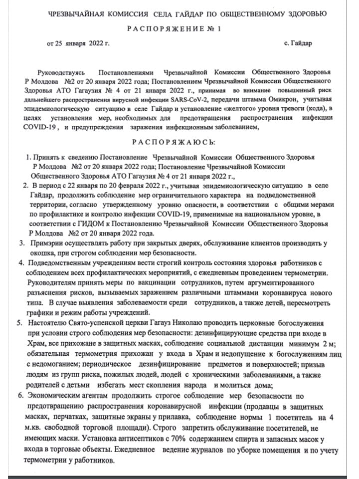 Главная Объявления 25 января 2022 г. Состоялось заседание чрезвычайной комиссии с. Гайдар по общественному...Объявления25 января 2022 г. Состоялось заседание чрезвычайной комиссии с. Гайдар по общественному здоровью 25.01.2022121 Facebook Twitter OK Linkedin Viber WhatsApp РаспечататьСХОЖИЕ СТАТЬИБОЛЬШЕ ОТ АВТОРАУважаемые жители с. Гайдар! На текущей неделе мусор вывозиться не будет, в связи с погодными условиями!Уважаемые жители с. Гайдар. Главное управление Агропромышленного Комплекса АТО Гагаузия информирует!!Памяти Дмитрия Владимировича Куру — благодарность за всё, что было сделано и оставлено после себя!