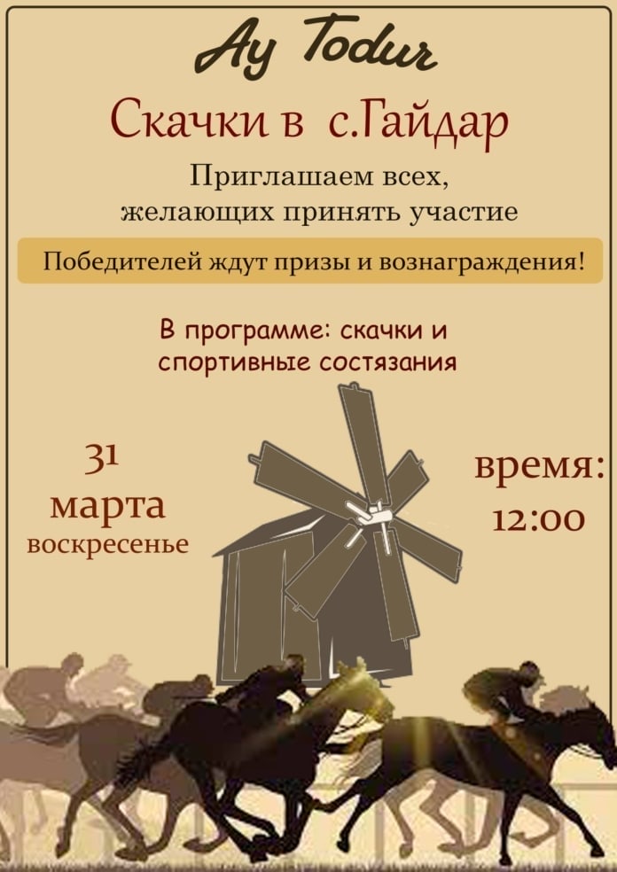 Для участия в конно – спортивных состязаниях приглашаем всех желающих из села Гайдар, а также других населённых пунктов Гагаузии.