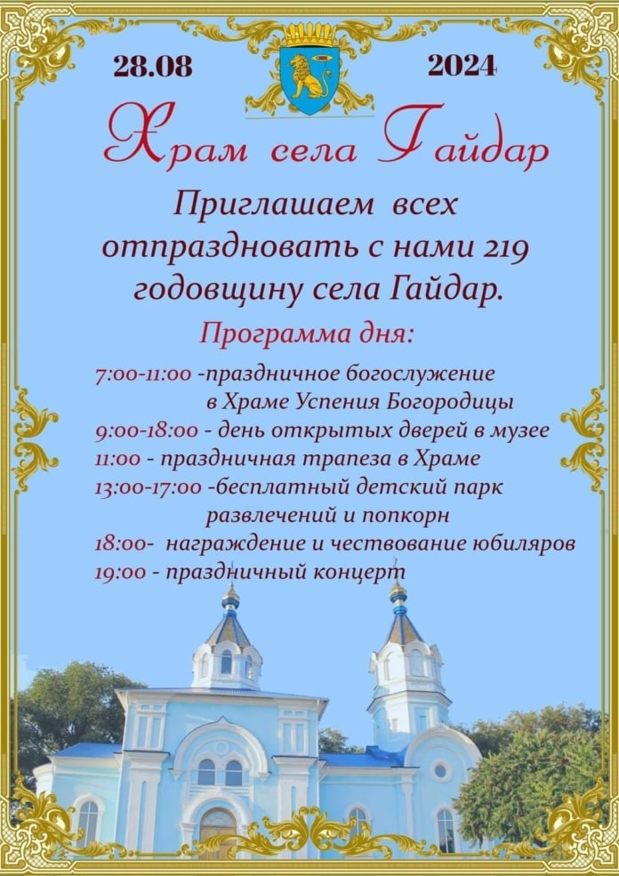 Главная Анонсы Приглашаем всех отпраздновать с нами 219 годовщину села ГайдарАнонсыОбъявленияПриглашаем всех отпраздновать с нами 219 годовщину села Гайдар 27.08.2024151 Facebook Twitter OK Linkedin Viber WhatsApp РаспечататьСХОЖИЕ СТАТЬИБОЛЬШЕ ОТ АВТОРАУважаемые жители с. Гайдар! Работы по благоустройству продолжаются!Уважаемые жители села Гайдар!Уважаемые жители и гости села Гайдар!Последние статьиУважаемые жители с. Гайдар! Работы по благоустройству продолжаются! 23.04.2026Уважаемые жители села Гайдар! 21.04.2026Уважаемые жители и гости села Гайдар! 18.04.2026