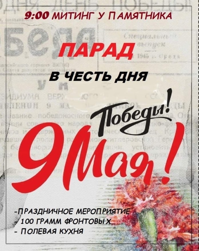 Главная Анонсы Приглашаем всех жителей села Гайдар на митинг в честь Дня Победы.АнонсыОбъявленияПриглашаем всех жителей села Гайдар на митинг в честь Дня Победы. 08.05.202440 Facebook Twitter OK Linkedin Viber WhatsApp Приглашаем всех жителей села Гайдар, 9 мая, на митинг в честь Дня Победы. Программа: 8:30 — парадное шествие от здания школы к памятнику 9:00 — митинг 9:45 — полевая кухня 11:00 — турнир по шашкам в «Парке моей мечты» РаспечататьСХОЖИЕ СТАТЬИБОЛЬШЕ ОТ АВТОРАУважаемые жители с. Гайдар! Работы по благоустройству продолжаются!Уважаемые жители села Гайдар!Уважаемые жители и гости села Гайдар!Последние статьиУважаемые жители с. Гайдар! Работы по благоустройству продолжаются! 23.04.2026Уважаемые жители села Гайдар! 21.04.2026Уважаемые жители и гости села Гайдар! 18.04.2026