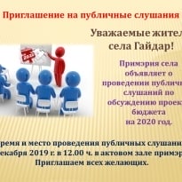 В данном слушание приняли участие: советники села, работники примэрии, детского сада, гимназии, совет старейшин, Дома культуры, МП » Aydar-Suyu» и остальные заинтересованные жители села.