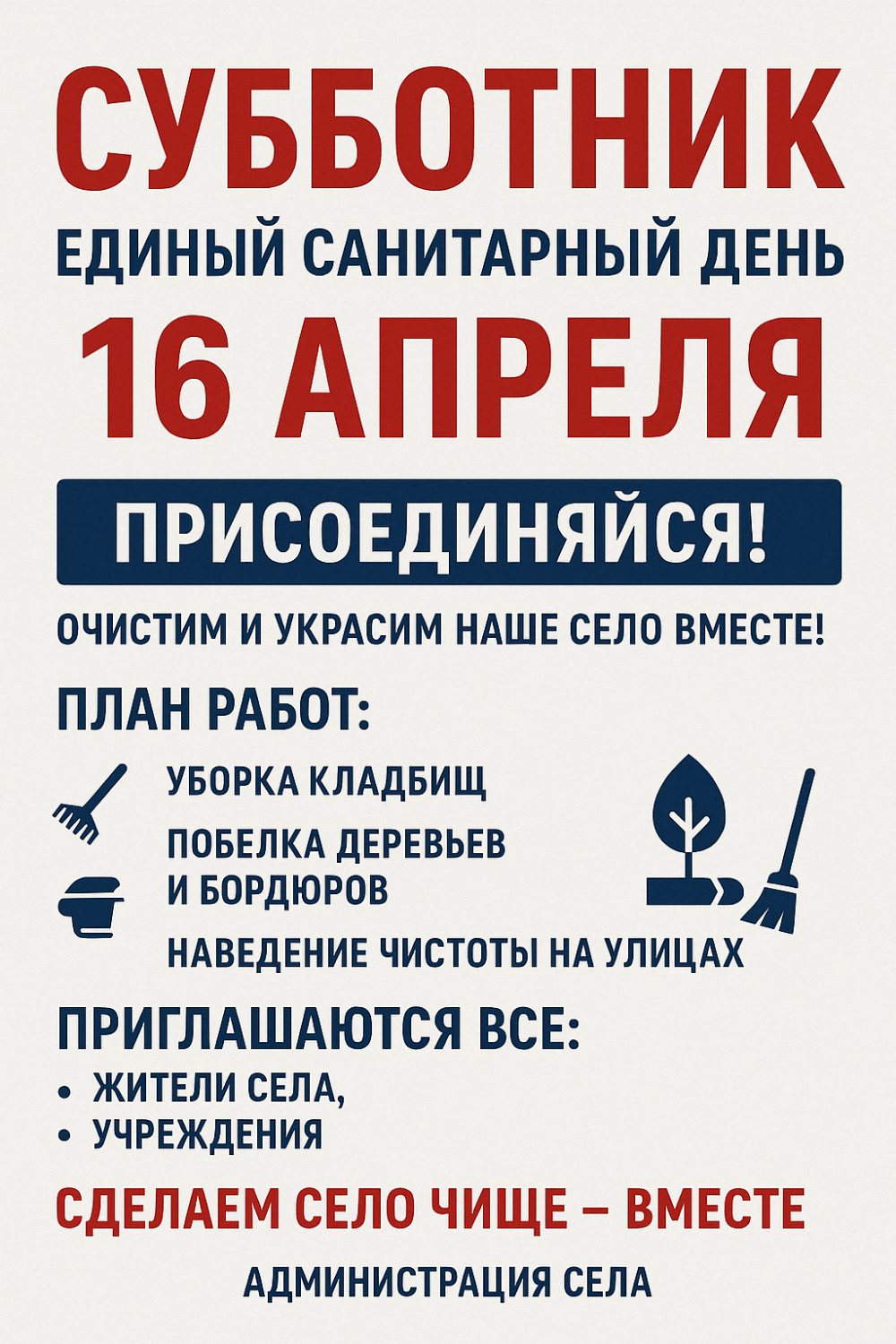 Просим Вас принять активное участие в «Едином санитарном дне», который состоится 16 апреля 2025 г.